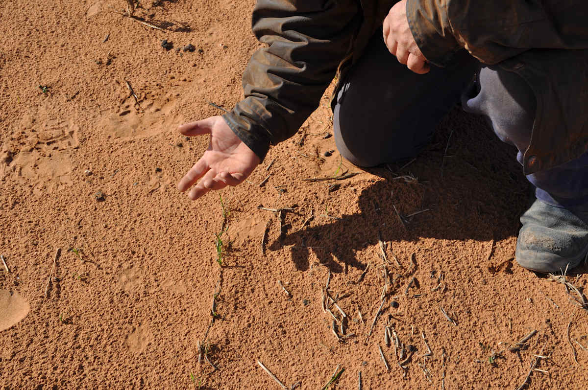 This lack of ground cover has left paddocks exposed to severe wind erosion, causing significant soil movement and reducing the already strained productivity of his land.